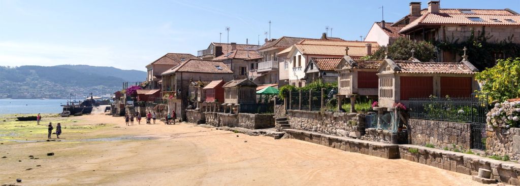 Una de las villas marineras con mas encanto de las Rias Baixas, una pura postal con 60 hórreos, la mitad de ellos alineados junto al mar. Merece la pena un paseo por su casco histórico, detenerse en sus soportales y cruceiros.
