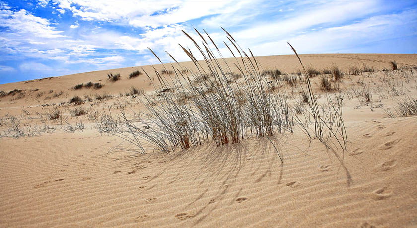 La gran duna móvil es la atracción. Con más de 1 km de largo, unos 250 m de ancho y unos 20 m de altura, la duna móvil de Corrubedo se impone desde la distancia
